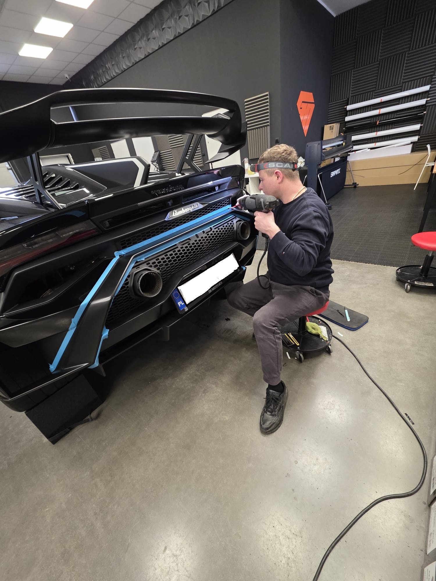Folia przygotowywana jest na ploterze Graphtec FC9000 — każdy wzorzec dopasowany indywidualnie do modelu pojazdu, z perfekcyjną dokładnością.